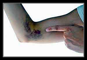 Khu trú ở mu bàn tay, ở cẳng tay, xuất huyết dưới da xuất hiện tự nhiên dưới dạng những vết bằng hạt đậu, hoặc đồng xu, không đều, màu đỏ thẫm. Sau vài ngày vết biến mất, để lại nhiễm sắc kín đáo. Rất hay tái phát