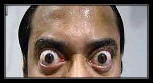 - Bệnh Basedow: tăng năng tuyến giáp kèm với co rút mi mắt trên và mất đồng vận mắt – mi mắt, không có giãn đồng tử nhiều; lồi mắt thường không đối xứng, đôi khi lồi mắt ác tính phù nề, nhất là trong thể bệnh nặng và trong thể bệnh đã được điều trị.
